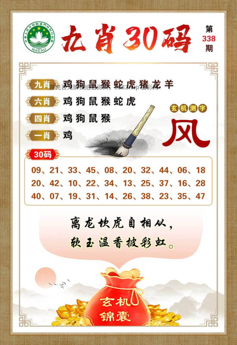 | 338期:九肖【马鸡猪羊狗猴蛇龙虎】开:狗08准 |